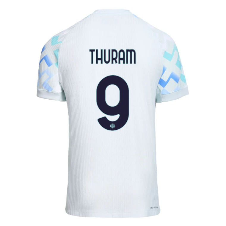 Buy Inter Milan Away THURAM 9 Jersey 25-26 (Player Version). Show your support for Inter Milan with the latest Inter Milan Soccer Kits. Player version shirts, being slim fit, tend to run smaller than standard sizes. It is generally recommended to order at least one size larger than your usual size to ensure a comfortable fit.