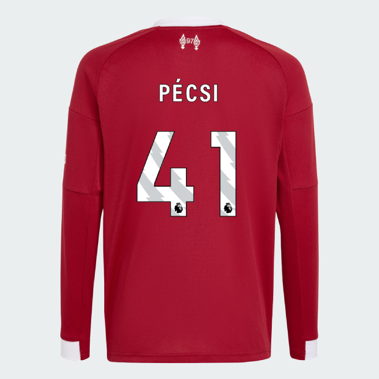 We provide Liverpool Home Long Sleeve PÉCSI 41 Jersey 25-26. Show your support for Liverpool with the latest Liverpool Soccer Kits.