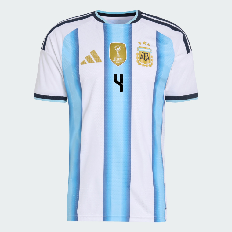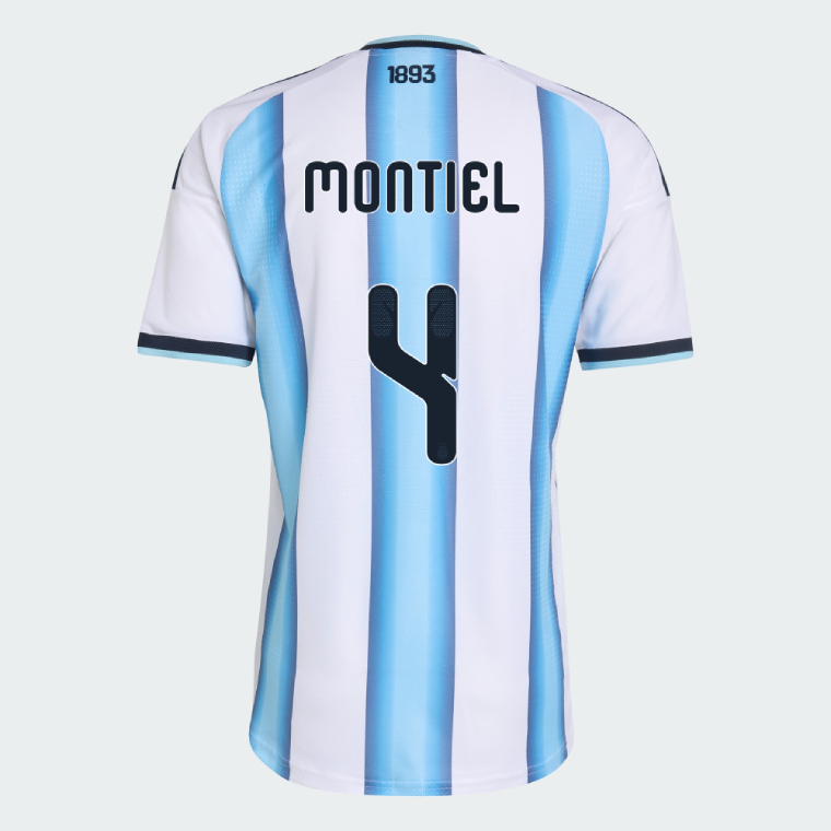 We provide Argentina Home MONTIEL 4 World Cup Jersey 2026 (Player Version). Show your support for Argentina with the latest Argentina Soccer Kits. Player version shirts, being slim fit. It is generally recommended to order at least one size larger than your usual size.