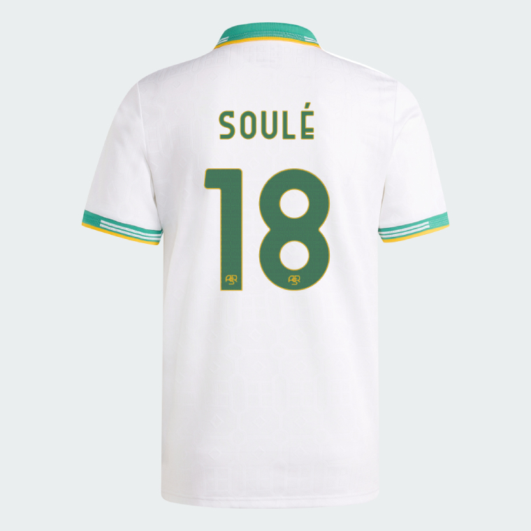 Buy AS Roma Third SOULÉ 18 Jersey 25-26 (Player Version). Show your support for AS Roma with the latest AS Roma Soccer Kits. Player version shirts, being slim fit, tend to run smaller than standard sizes. It is generally recommended to order at least one size larger than your usual size to ensure a comfortable fit.