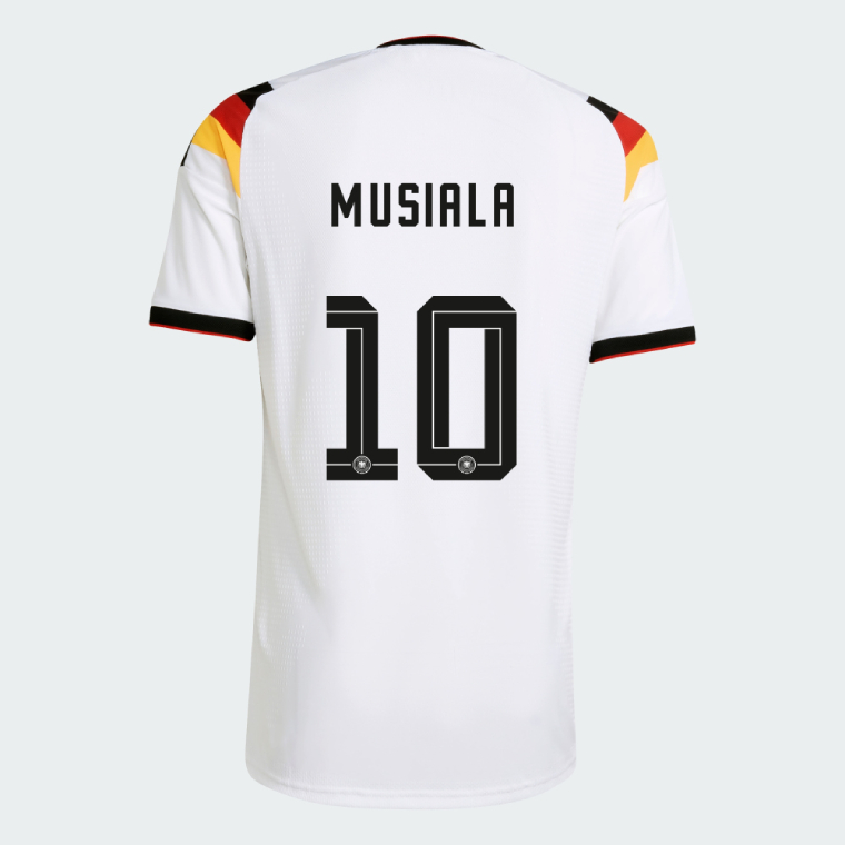 We provide Germany Home MUSIALA 10 World Cup Jersey 2026 (Player Version). Show your support for Germany with the latest Germany World Cup Soccer Kits. Player version shirts, being slim fit. It is generally recommended to order at least one size larger than your usual size.