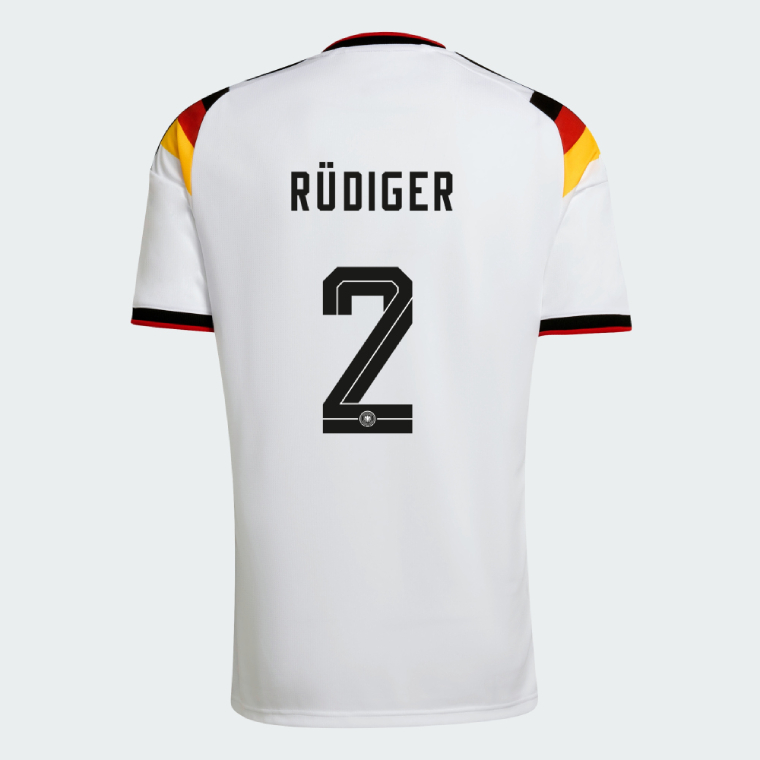 We provide Germany Home RÜDIGER 2 Jersey 2026. Show your support for Germany with the latest Germany World Cup Soccer Kits.