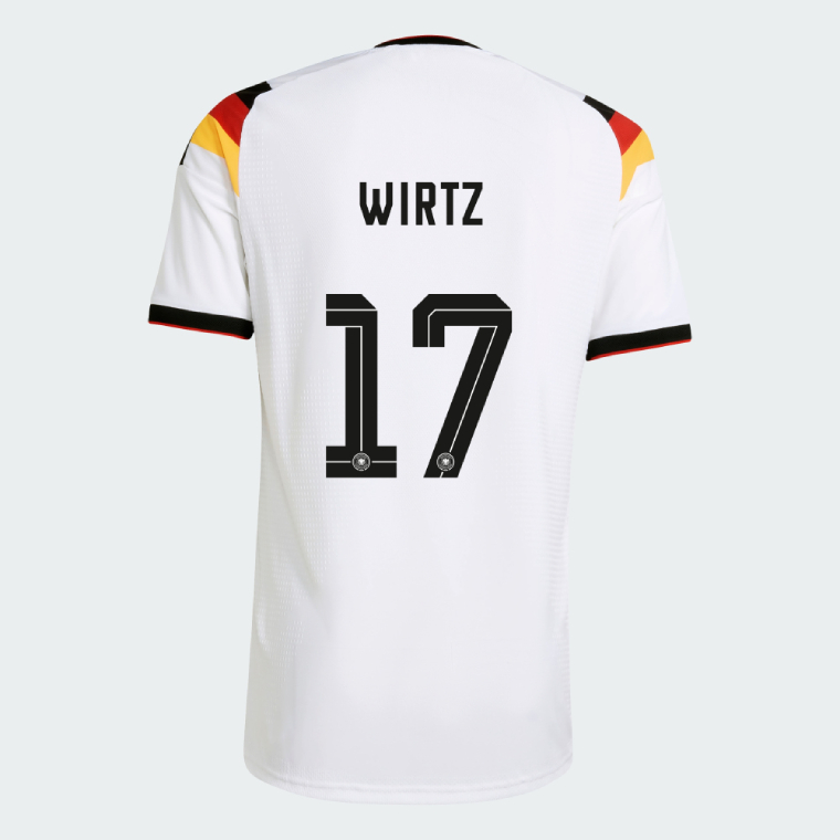 We provide Germany Home WIRTZ 17 World Cup Jersey 2026 (Player Version). Show your support for Germany with the latest Germany World Cup Soccer Kits. Player version shirts, being slim fit. It is generally recommended to order at least one size larger than your usual size.