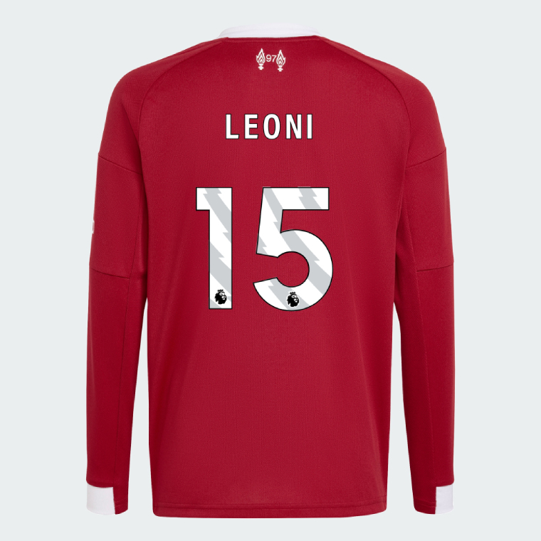 We provide Liverpool Home Long Sleeve LEONI 15 Jersey 25-26. Show your support for Liverpool with the latest Liverpool Soccer Kits.
