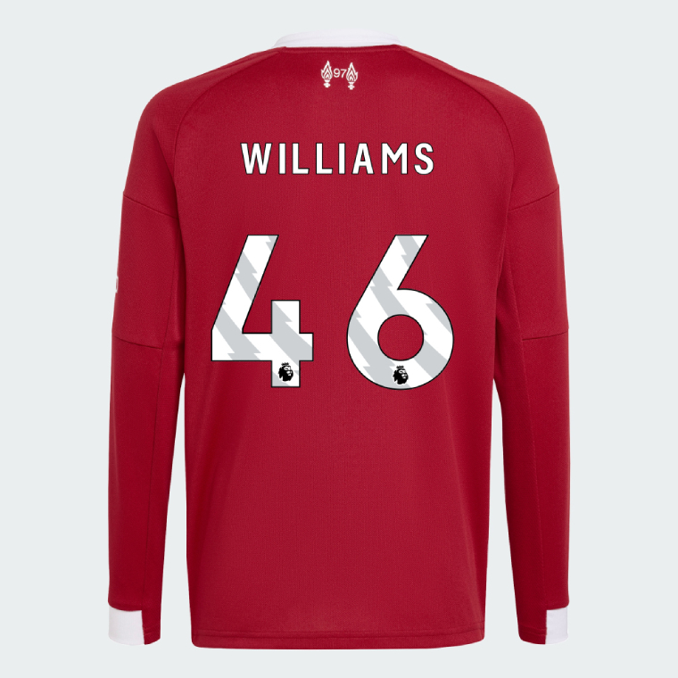 We provide Liverpool Home Long Sleeve WILLIAMS 46 Jersey 25-26. Show your support for Liverpool with the latest Liverpool Soccer Kits.
